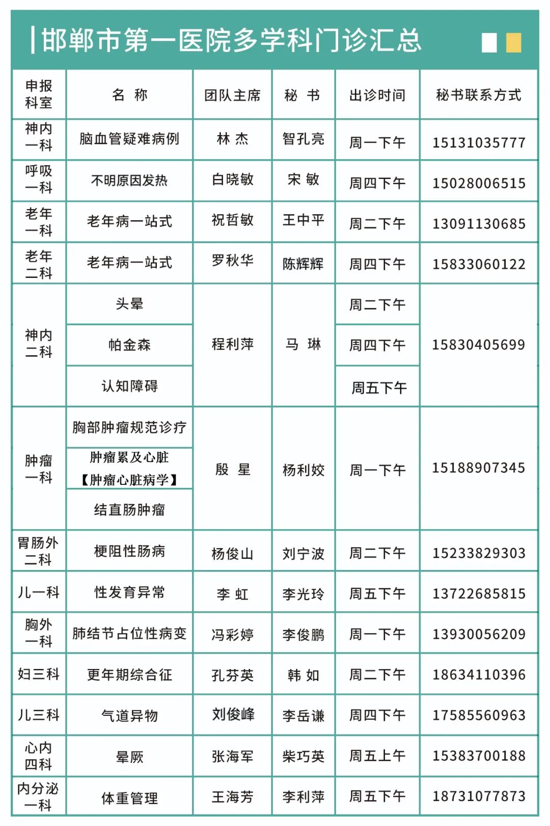 如果您或身边的人正被复杂健康问题困扰,不妨关注邯郸市第一医院多学科门诊,将对每一个多学科团队进行详细介绍,您可以拨打电话(0310-8635037)即可咨询预约,让多学科专家团队为您的健康保驾护航!