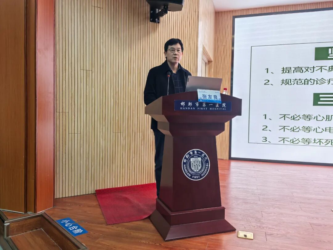首都医科大学附属北京朝阳医院王乐丰教授聚焦CHIP病人(复杂高危冠心病患者)的处理策略展开深度解析,结合临床实践中的难点与热点,系统阐述了CHIP患者的风险分层、介入治疗时机选择、器械优化应用及围手术期管理要点。河北省人民医院齐晓勇教授以STEMI精准再灌注治疗策略选择为核心主题,深入剖析了ST段抬高型心肌梗死(STEMI)救治的核心逻辑与精准化路径。邯郸市第一医院常超教授聚焦肥厚型心肌病的诊治新进展,从疾病的病因机制、临床分型、诊断标准到治疗策略进行了全面梳理。北京安贞医院宋荟芬教授以双心疾病诊疗思路为主题,深刻阐释了心血管疾病与心理因素的相互作用机制。河北省人民医院李树仁教授围绕经皮冠状动脉介入治疗指南(2025) 进行权威解读,聚焦指南更新的核心要点,包括介入治疗的适应症拓展、病变评估技术优化、支架选择策略、围手术期药物治疗调整等内容。邯郸市中心医院刘津军教授以ST段抬高心肌梗死患者急诊PCI微循环保护策略为核心,深入探讨了STEMI患者急诊经皮冠状动脉介入治疗(PCI)中微循环障碍的发生机制、危害及保护措施。邢台人民医院张友良教授授聚焦STEMI急性期主要问题及处理策略,系统梳理了ST段抬高型心肌梗死急性期常见的并发症(如心力衰竭、心律失常、心源性休克)及临床关键问题。北京安贞医院程文立教授以从2024版中国高血压防治指南看依普利酮在高血压疾病中的应用为主题,结合最新指南更新要点,深入解读了依普利酮在高血压治疗中的临床价值。邯郸市第一医院邵丽莉教授聚焦心肺运动评估的临床应用,系统介绍了心肺运动试验(CPET)的原理、操作流程及指标解读方法。华北医疗集团峰峰总医院李玲教授围绕中国心房颤动管理指南(2025) 进行深度解读,聚焦心房颤动的筛查与诊断、卒中风险评估、心率与心律控制策略、抗凝治疗优化等核心更新内容。邯郸市第一医院韩继如教授以血脂临床研究进展为主题,全面梳理了近年来血脂领域的前沿研究成果与临床实践更新。邯郸市第一医院冯海斌教授聚焦主动脉瓣疾病治疗新进展,从主动脉瓣狭窄、关闭不全的病因诊断、病情评估到治疗策略进行了系统阐述。邯郸市第一医院焦凤辉教授以丽文术式治疗肥厚型心肌病病例分享为核心,通过具体临床病例,详细阐述了丽文术式(室间隔心肌部分切除术)的手术适应症、操作要点、围手术期护理及术后康复管理。邯郸市第一医院柴巧英教授围绕非心源性晕厥的诊治展开专题分享,系统梳理了非心源性晕厥的常见病因(如神经源性、代谢性、环境因素等)、诊断流程与鉴别诊断方法。学术内容丰富,紧紧围绕心血管疾病的最新研究进展、前沿技术和临床难点进行了深入探讨与交流,堪称一场精彩纷呈的“学术盛宴”。